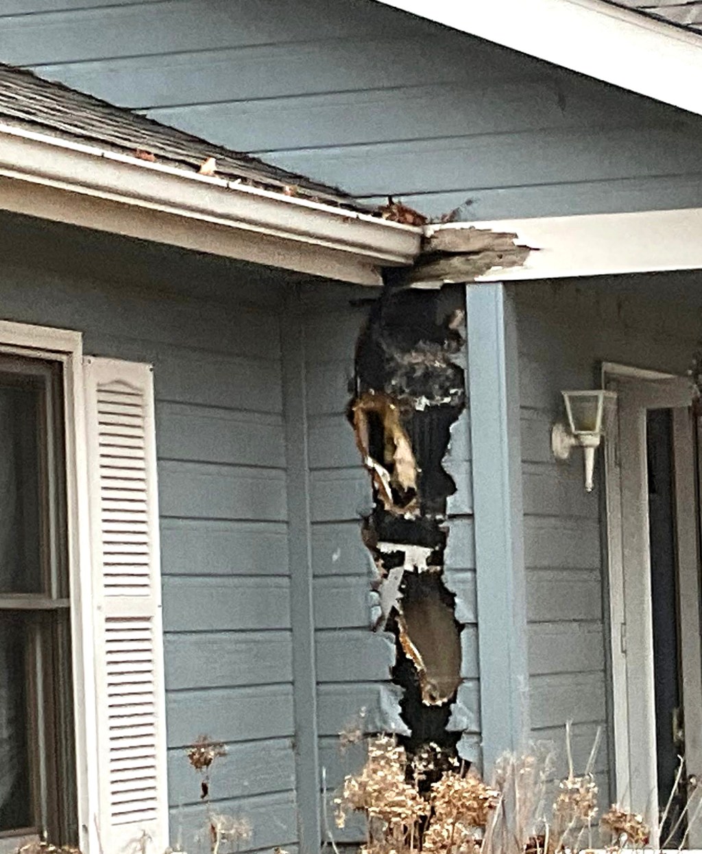 The next photo below is the worst case of damage I’ve seen from a missing kickout flashing. Luckily, this one was on a neighboring house and not the house my clients were buying!