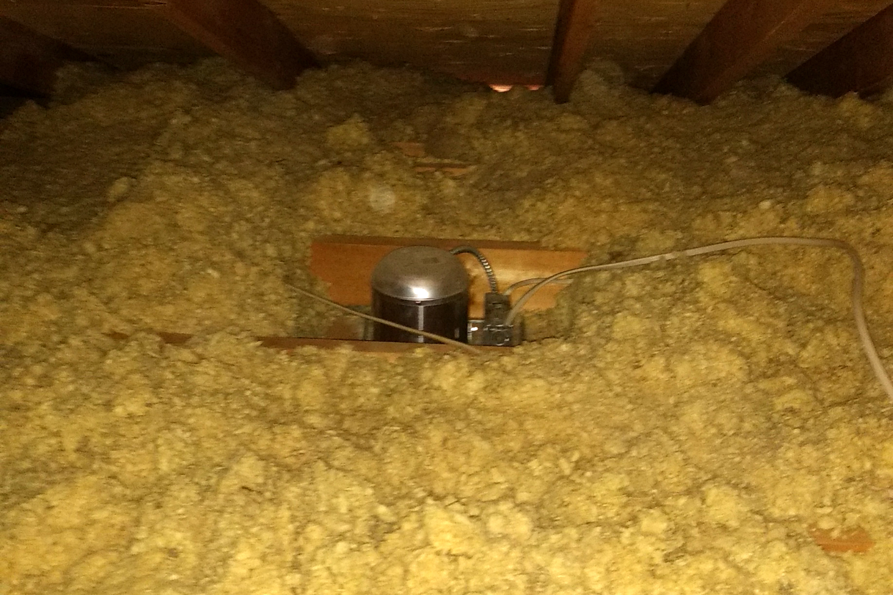As part of your initial inspection, you’ll want to look for places where conditioned air might be leaking from the living space to your attic. These areas should be sealed before you add insulation. Some of the biggest problem areas include open areas around furnace flue pipes, dropped soffits that are open to the attic, and around recessed lights. Be aware that flue pipes and recessed lights can get VERY hot. Sheet metal flashing sealed with high-temperature caulk may be required to keep insulation from coming in contact with flue pipes. Insulation boxes can be purchased to protect recessed lights not rated for contact with insulation.